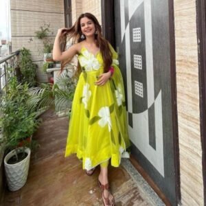 Parrot Green Color Digital Printed Anarkali Gown