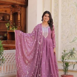 Georgette Lavender Color Embroidered Gown