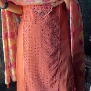 Floral Embroidered Pakistani Style Semi Stitched Dress Material