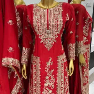 New Grand Red Color Chinnon Embroidery Sequence Sharara Suit