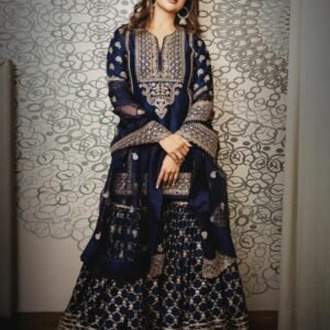 Navy Blue Color Sequence Work Sharara Suit