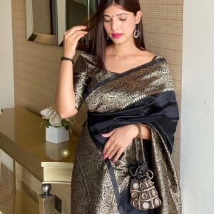 Black Banarasi Soft Silk Jacquard Saree With Blouse Piece