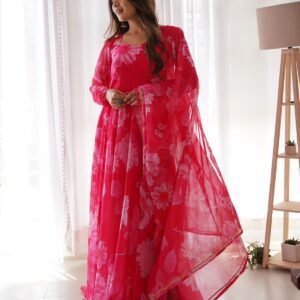 Pink Color Beautiful Digital Print Gown