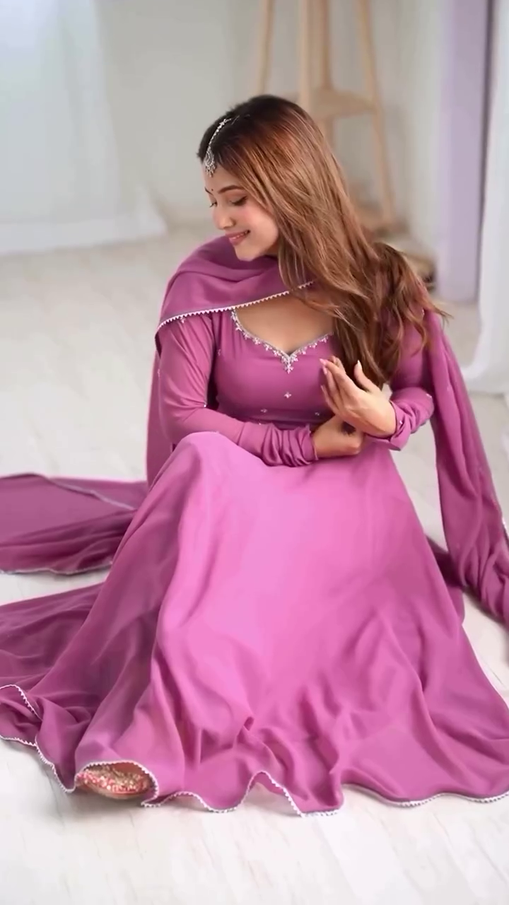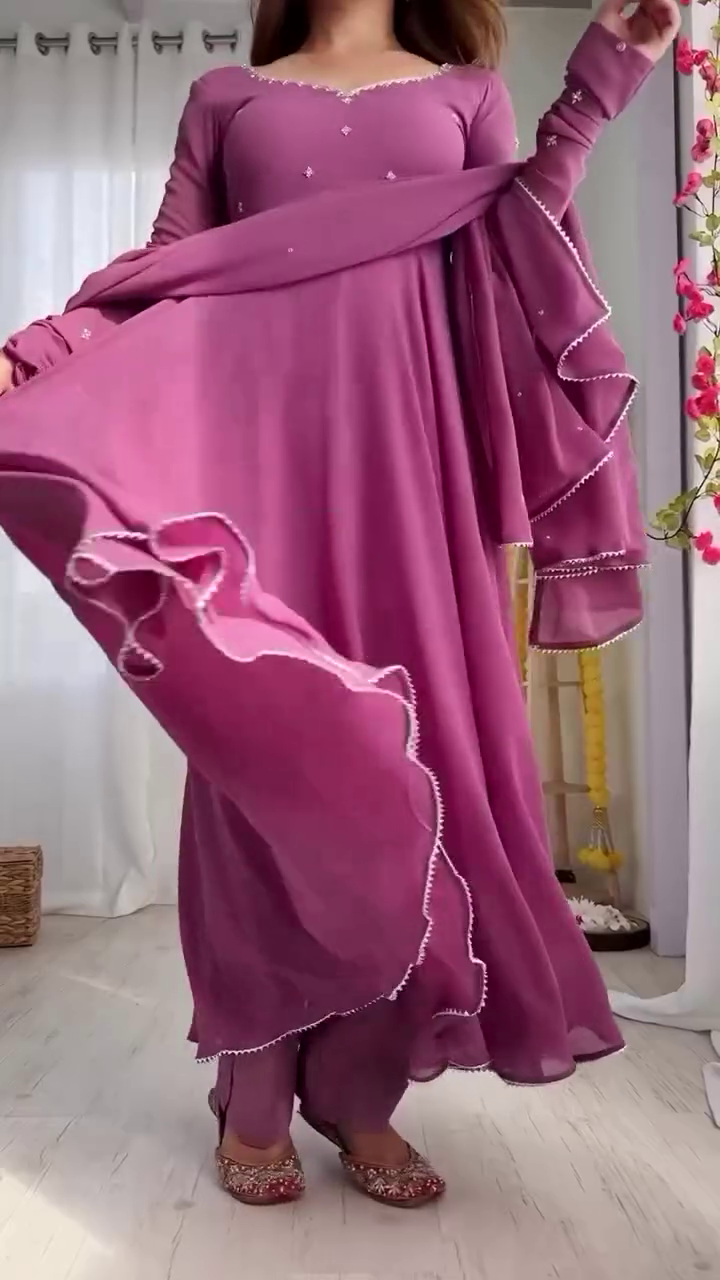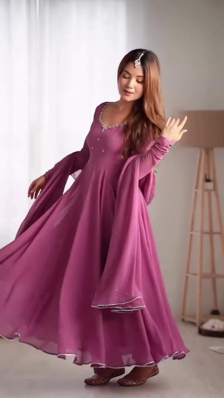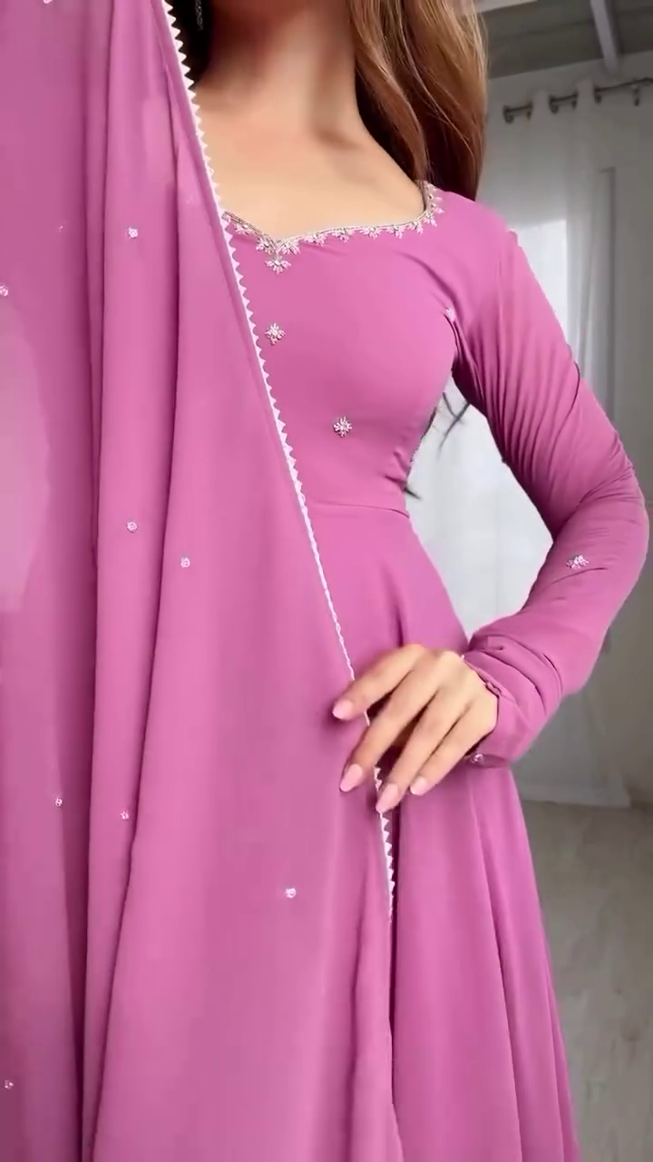 Title: Mauve Pink Flared Anarkali Gown with Hand Embellishment