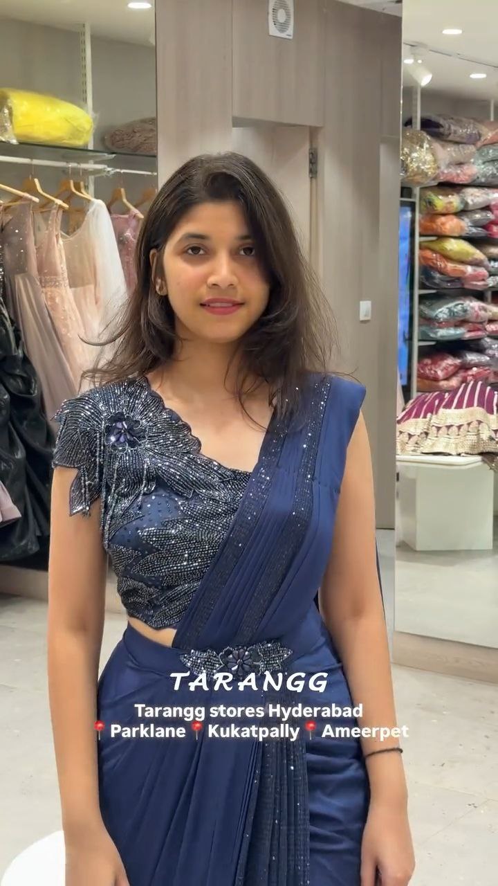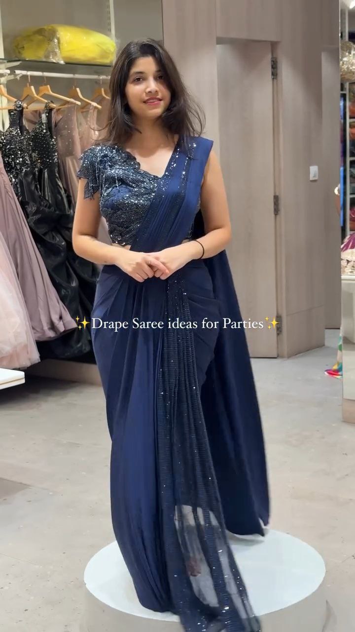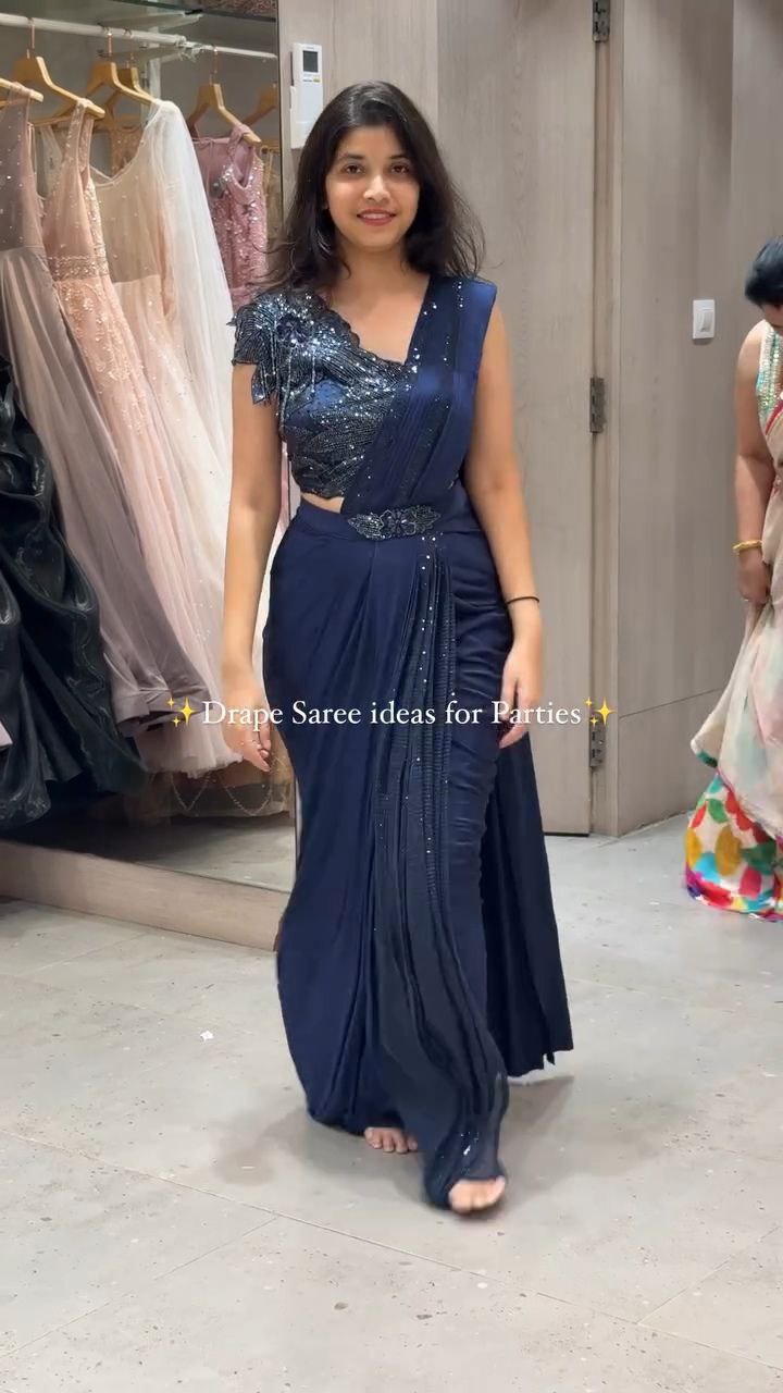 Midnight Blue Party Drape Saree