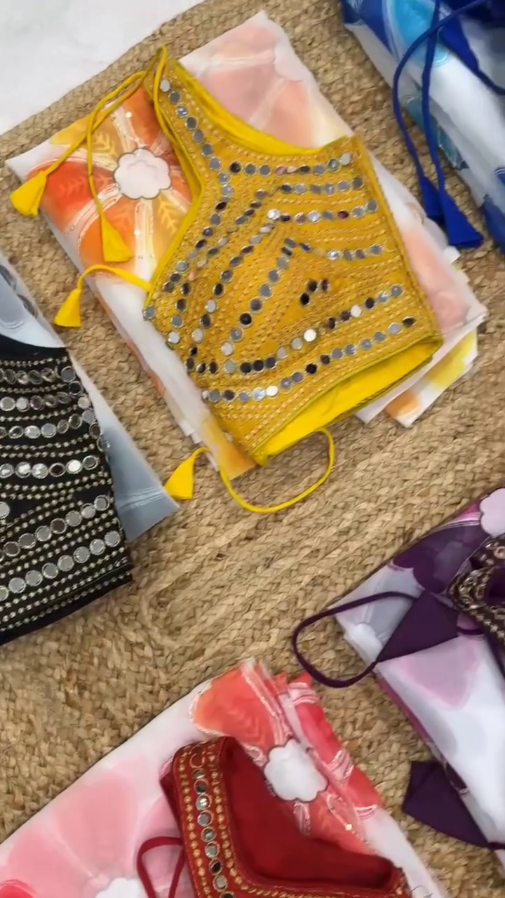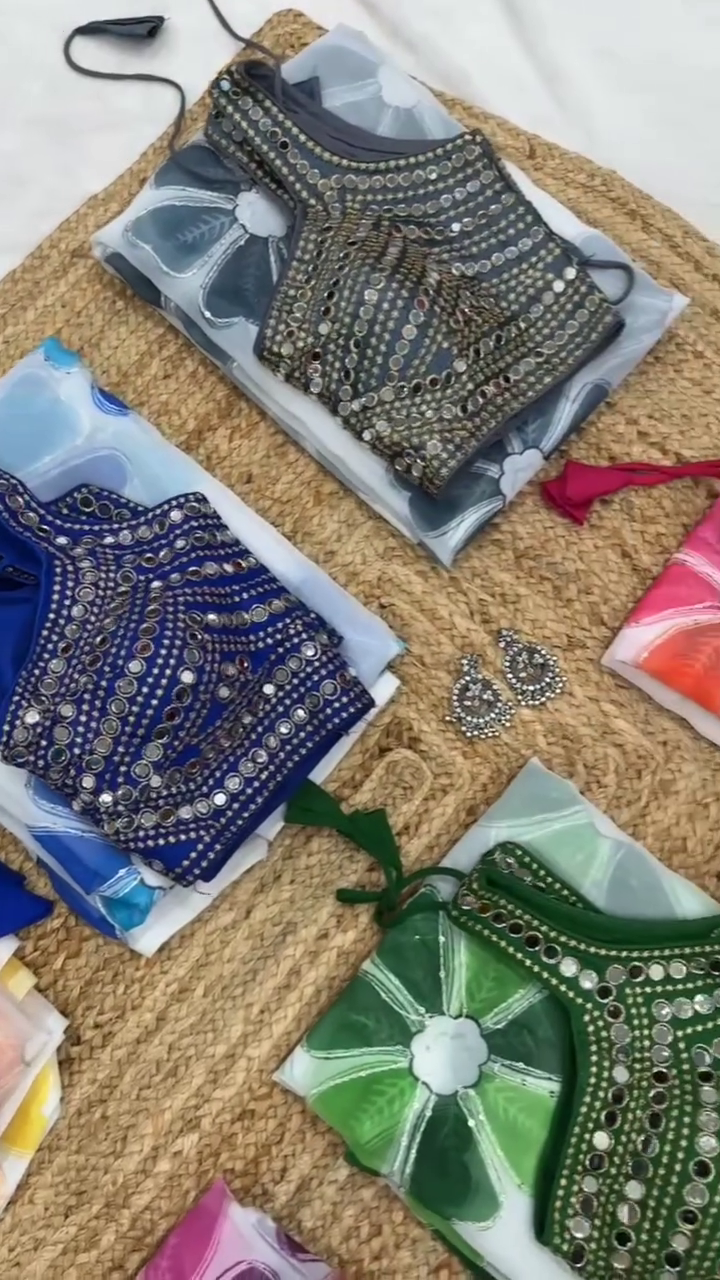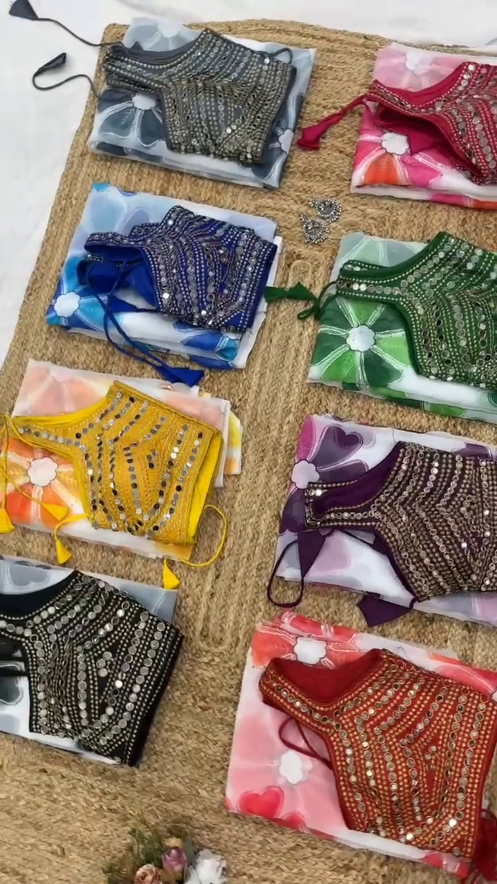 Blouse: Stretchable Lycra with Heavy Mirror Handwork