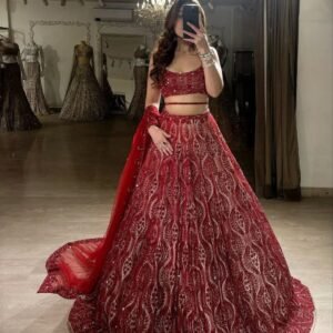 Red Color Thread Embroidery Work Lehenga Choli
