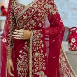 Red Wedding Handwork saree Original Zardosi Crystal Bollywood Indian Style