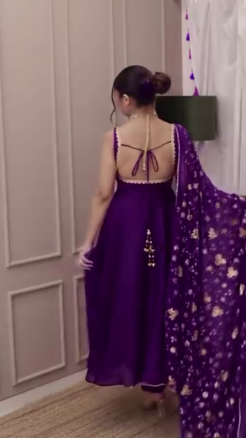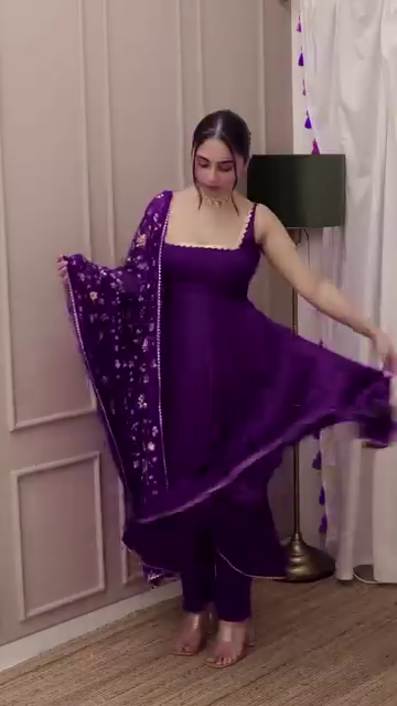 Be the first to review “Purple Velvet Anarkali Gown Set with Floral Embroidered Dupatta”