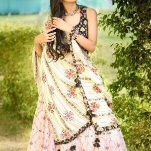 Be the first to review “This set of crop top and maxi skirt is crafted in printed cotton Lehenga choli”