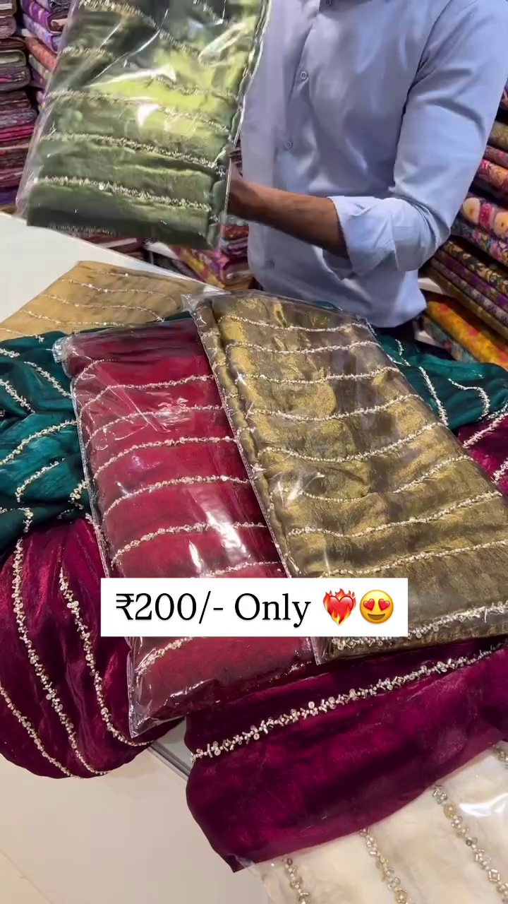 (Each dupatta features diagonal sequin embroidery in shimmering lines)